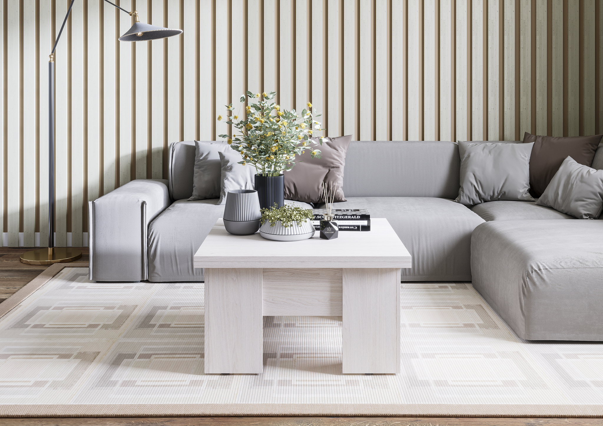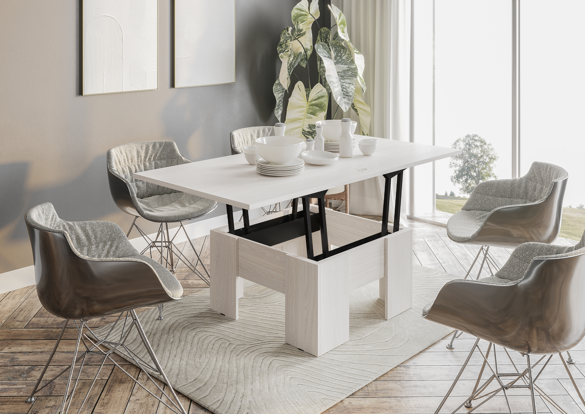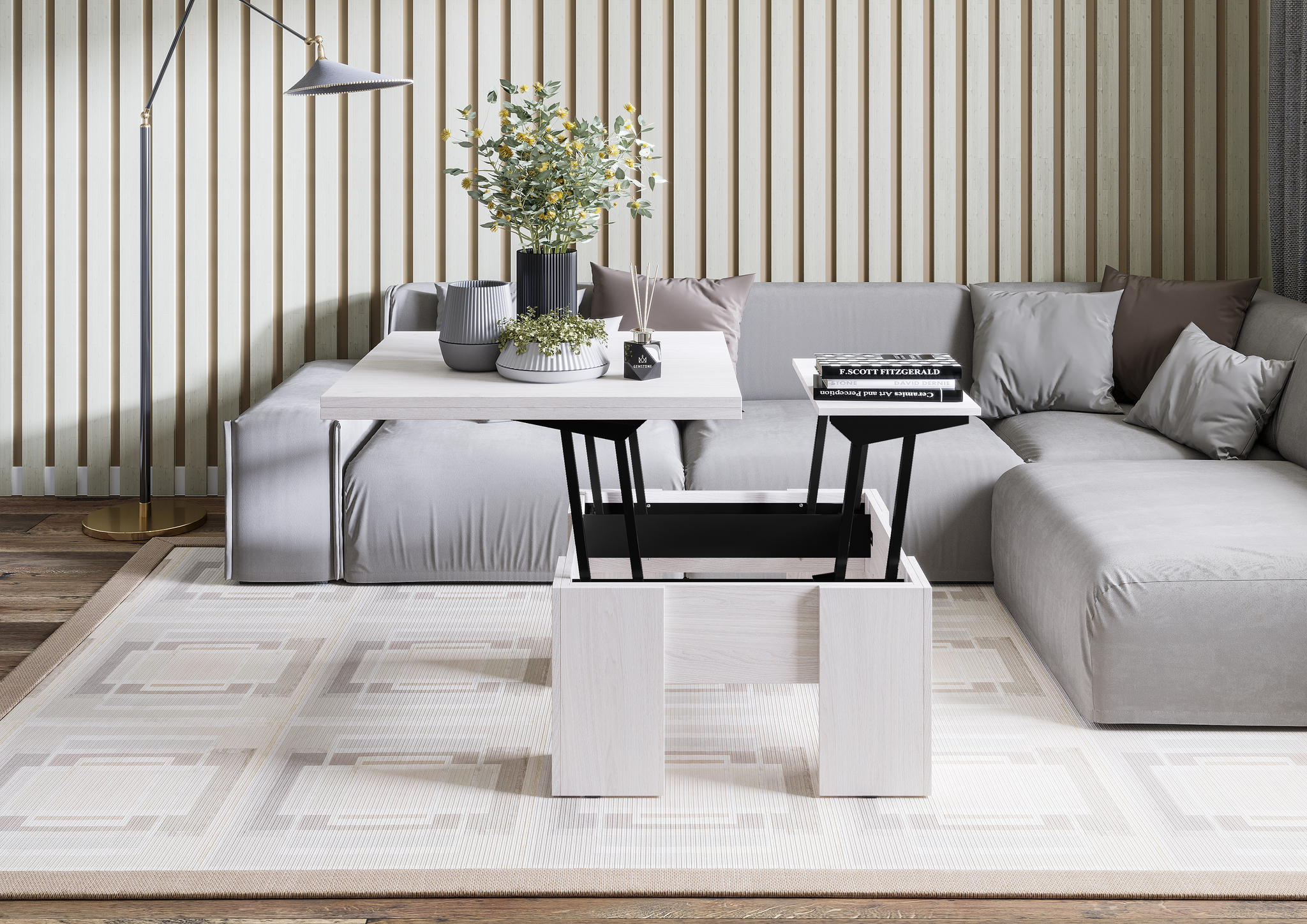 Модель будет прекрасно смотреться в гостиной, а к приходу гостей – с легкостью превратиться в полноценный стол.