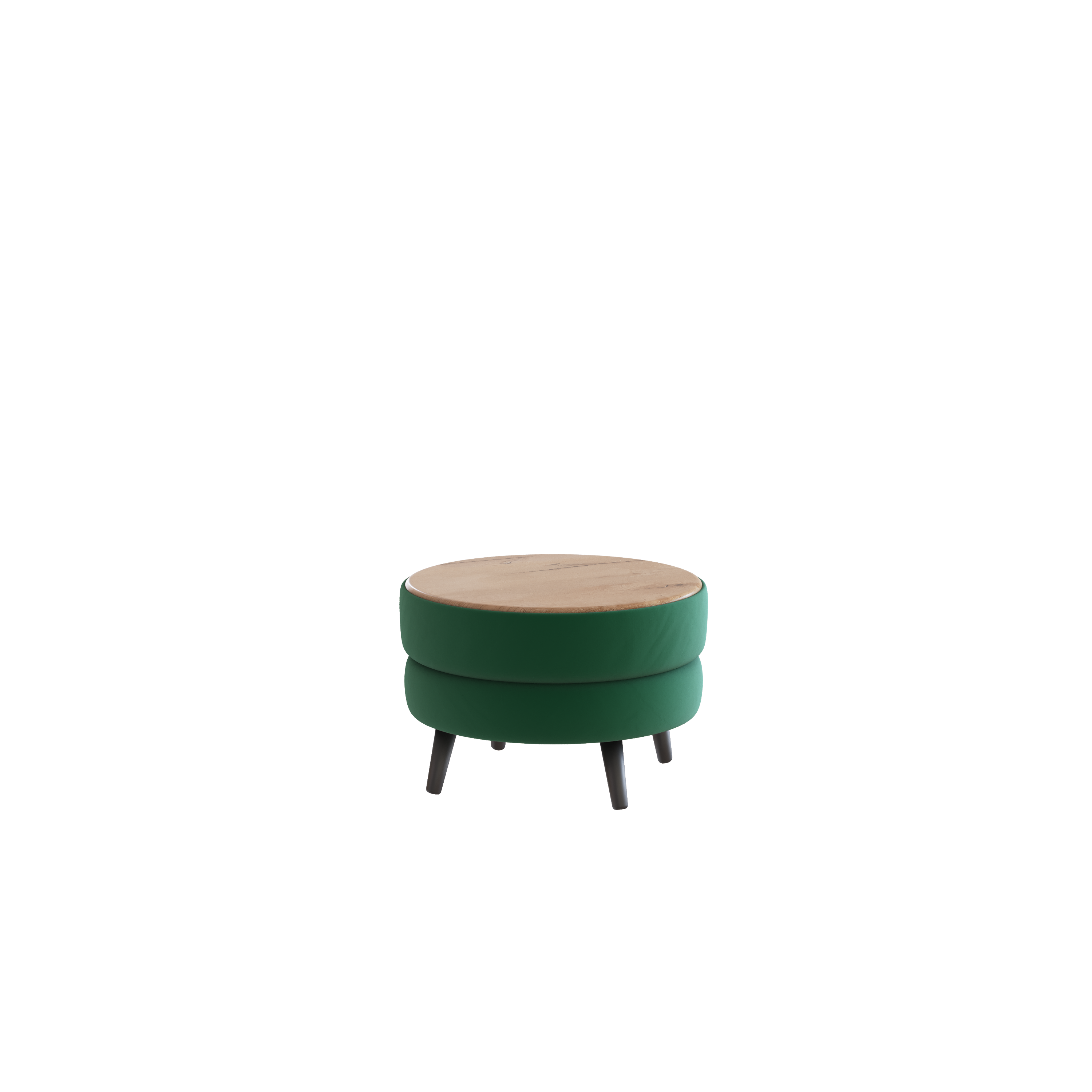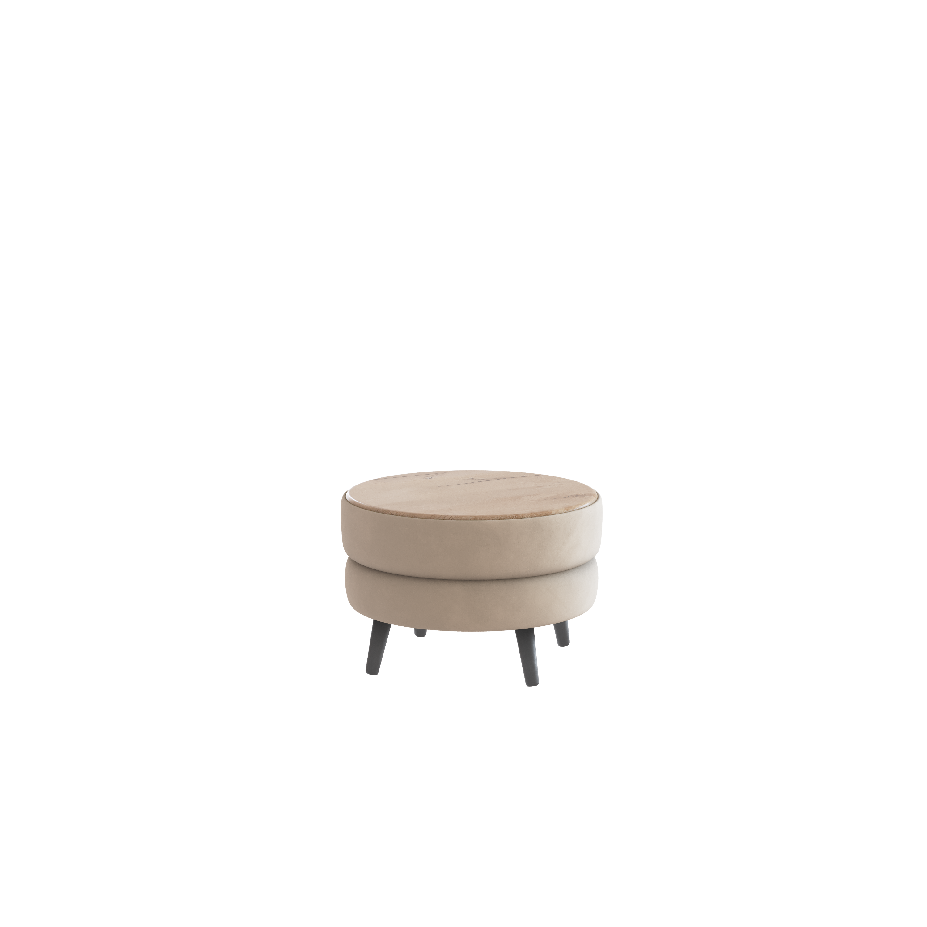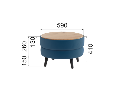 Обивочный материал- двухслойный плотный велюр, с водоотталкивающим покрытием. Верхняя часть выполнена из МДФ-плиты в матовой пленке ПВХ. Опоры из массива дерева высотой 150мм, окрашенные в чёрный цвет.