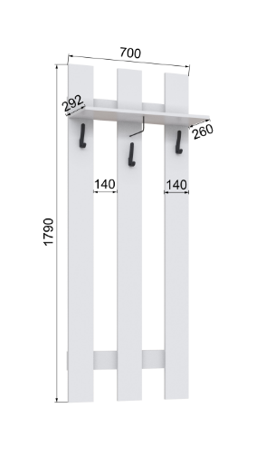 Вешалка «Бруклин» — широкая (700 мм) и вместительная конструкция из качественного ЛДСП выдерживает высокие нагрузки и прослужит долго. Ее высота (1790 мм), глубина (292 мм) обеспечивают комфортную эксплуатацию. Впишется в любой интерьер, прочность материалов гарантирует надежность ежедневного использования.